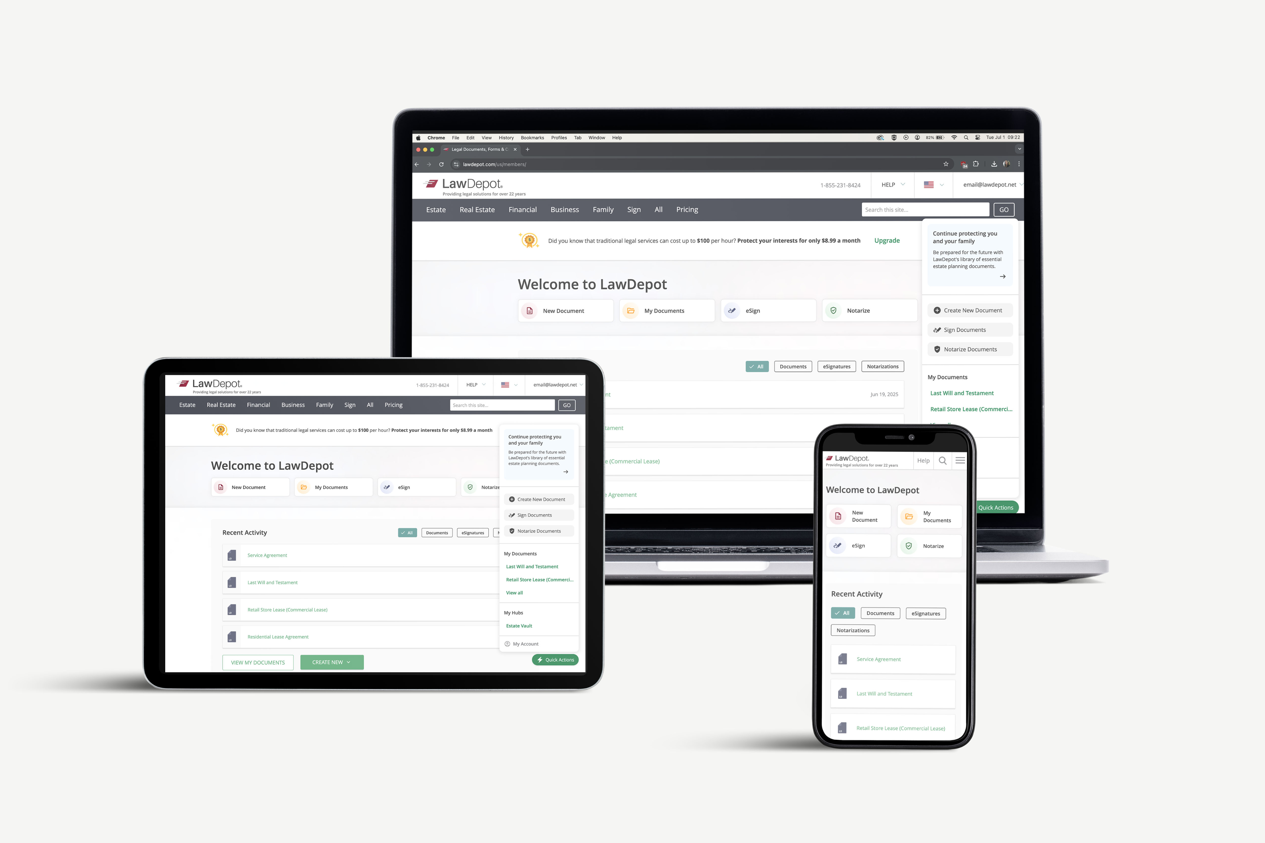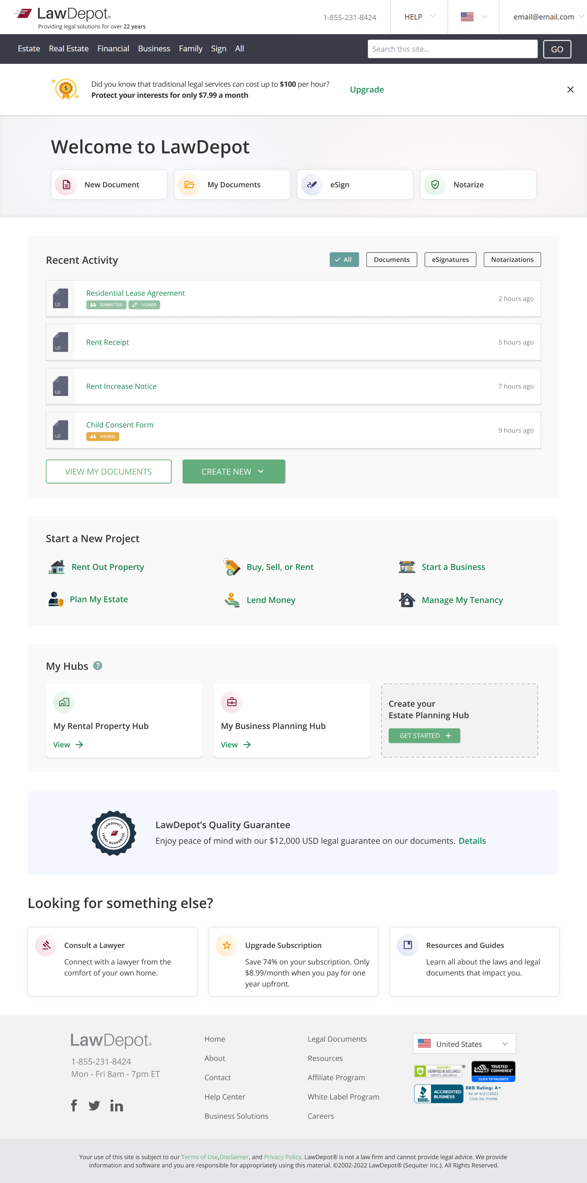 This project was a collaborative effort to update the LawDepot Homepage (for signed-in members) to highlight key features and services of the LawDepot platform through improved navigation and strategic callouts.